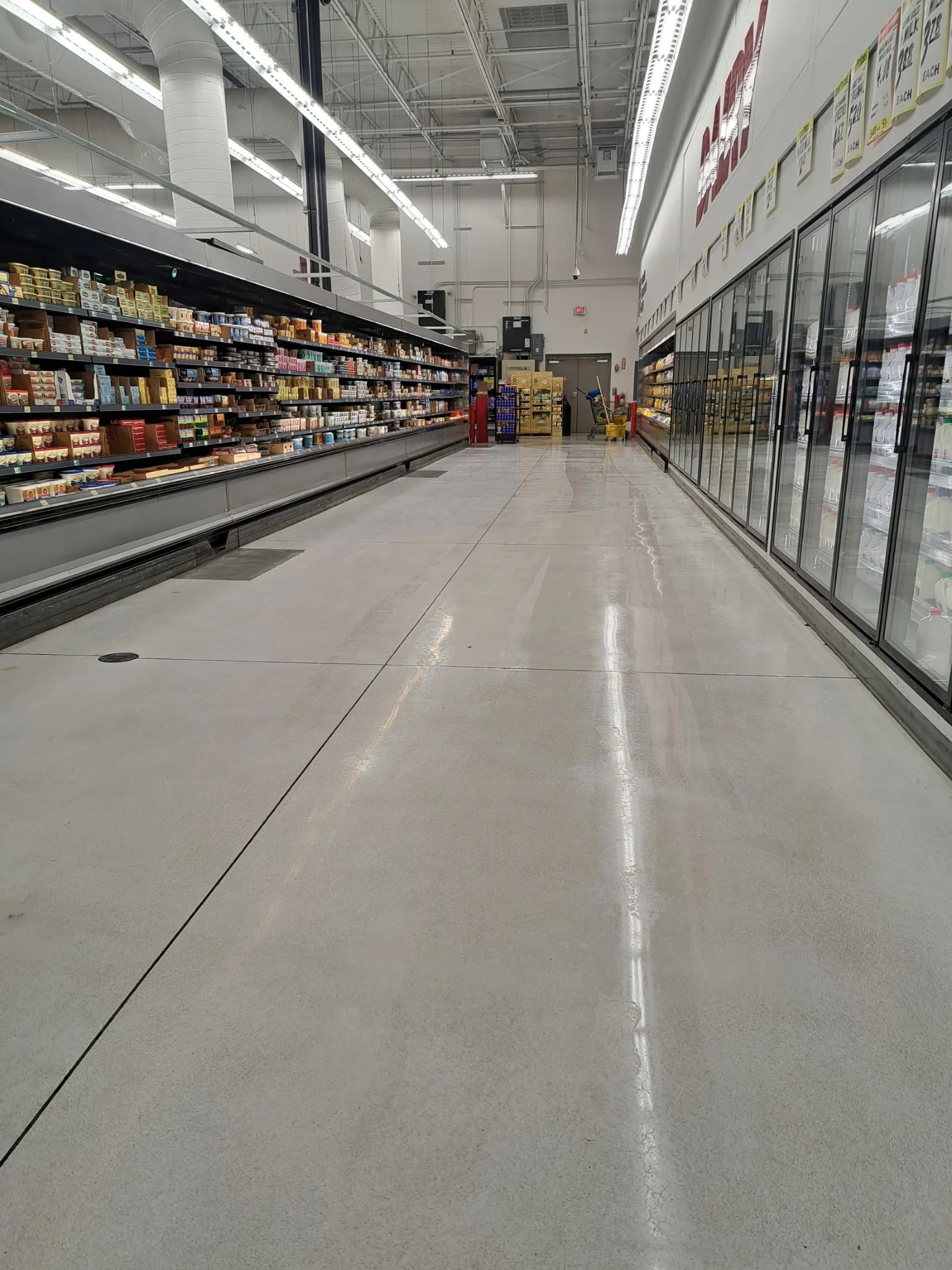 Ideal for concrete, warehouse floors, VCT, and high-traffic commercial spaces, our process delivers a noticeably higher-quality finish compared to standard scrubbing or buffing.
